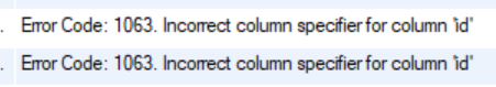 Error Code: 1063, incorrect column specifier for column